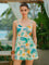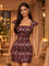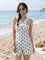 Brown Geometric Sleeveless Mini Dress With Choker Neck Tie