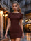 Maroon Solid Short Sleeves Mini Dress