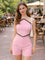 Pink Solid Shoulder Straps Mini Dress