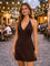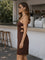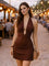 Brown Solid Shoulder Straps Mini Dress
