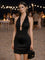 Black Solid Shoulder Straps Mini Dress