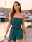 Green Solid Shoulder Straps Mini Dress