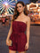 Maroon Solid Shoulder Straps Mini Dress