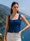 Blue Solid Sleeveless Tops