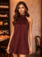 Red Solid Sleeveless Mini Dress