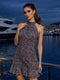 Brown Geometric Sleeveless Mini Dress