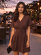 Brown Ethnic Motifs Short Sleeves Mini Dress