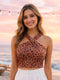 Brown Abstract Sleeveless Tops